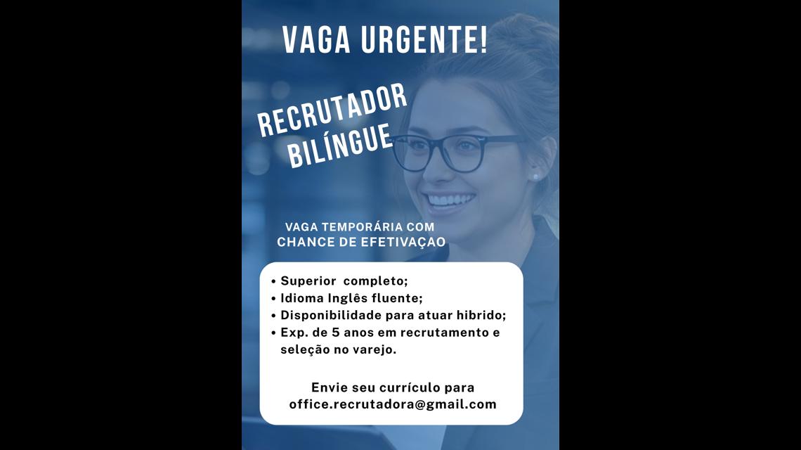 Procuramos um(a) Recrutador(a) Bilingue experiente para atuar com vagas de Marketing, E-commerce ou Varejo.